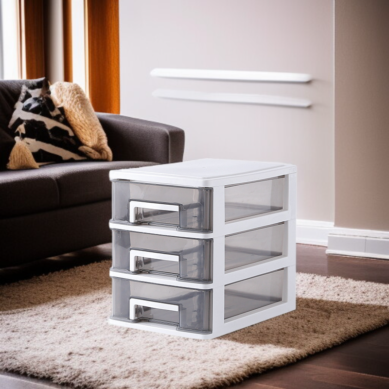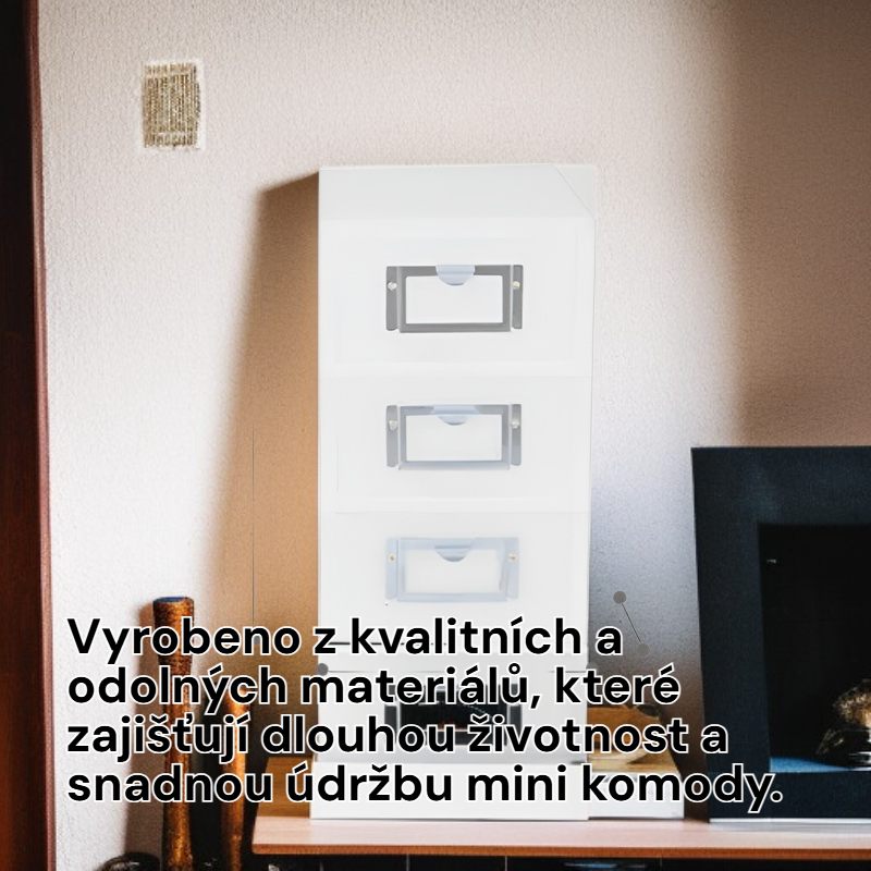● Kompaktní a stylový design třípatrové mini komody skvěle zapadne do každého interiéru a dodá mu moderní nádech. ● Praktické tři zásuvky umožňují přehledné uspořádání drobností, kosmetiky nebo kancelářských potřeb – ideální pro domov i kancelář. ● Vyrobeno z kvalitních a odolných materiálů, které zajišťují dlouhou životnost a snadnou údržbu mini komody. ● Minimalistické provedení v elegantních barvách se snadno kombinuje s ostatním nábytkem a podtrhne váš osobní styl. ● Snadná montáž a lehká konstrukce umožňují jednoduché přemísťování a flexibilní využití podle vašich potřeb.
